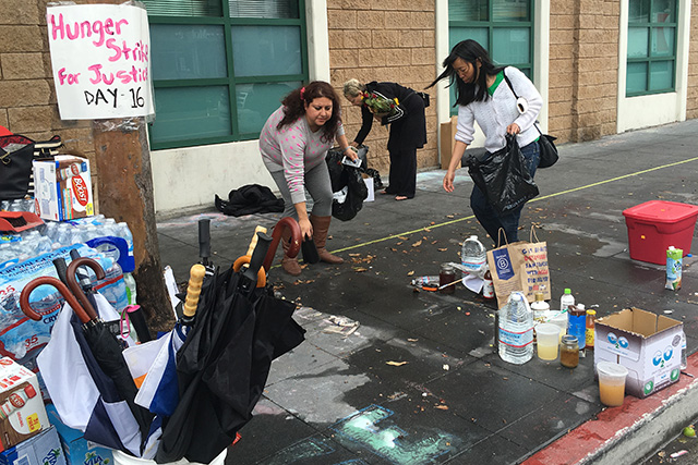 “We are just getting checked on, but there is reason for concern,” said hunger striker and candidate for District 9 supervisor Edwin Lindo, while gathering several items from a tent pitched outside of the Mission Police station where he has been camping for over two weeks. This morning, Lindo was unusually terse, and said that he has lost 20 pounds. “We are growing weaker by the day.”