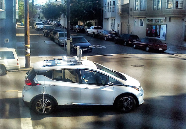 They didn’t have to bother engaging in subterfuge: their privacy was stripped away in May when The Verge reported that driverless cars or AVs — autonomous vehicles — were being test driven in San Francisco by a former start-up called Cruise Automation, started by a man named Kyle Vogt who developed technology that will allow any car to be fitted with a self-driving system. Cruise Automation started test-driving the first car — described by one of Vogt’s collaborators as being “pretty ghetto” — on the 101 freeway sometime in 2014.