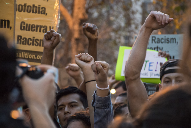 Though many of the chants were angry (“Fuck Donald Trump” was a popular refrain), speakers said they wanted to reassure minorities who feel threatened by Trump’s statements that San Franciscans would stand up for them.