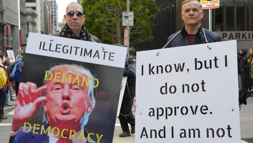Trump inauguration day protests in downtown San Francisco on Friday, January 20, 2017. Photo by Dora Luo.