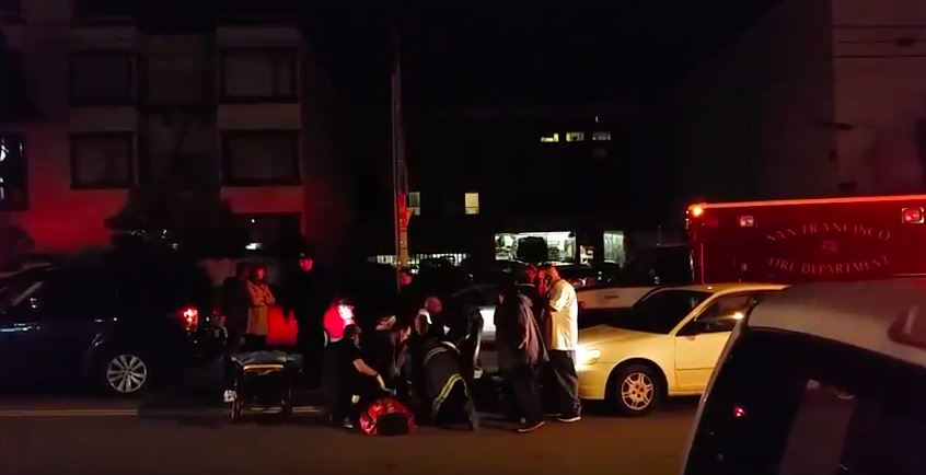 A reader sent video and reported this evening that a pedestrian was hit by a car around 6 p.m. at South Van Ness Avenue and 20th Street. The condition of the victim is unclear.