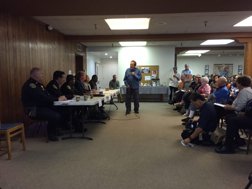 One of the victims, 69-year-old Jeff Kelton, addressed the panel of officials at the Dolores Park Church meeting, including Police Chief William Scott, Mission Station Captain William Griffin, District 8 Supervisor Jeff Sheehy and Parks and Recreation Director Phil Ginsburg.