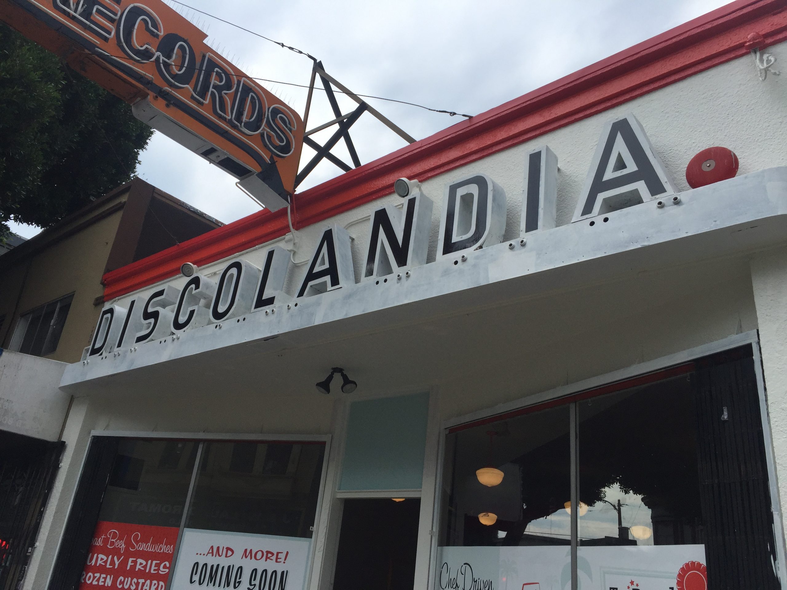 Top Round Roast Beef, a fast food franchise, is moving into the building formerly occupied by the record shop, which closed in 2011. The restaurant Pig & Pie set a precedent for conserving the sign as a local landmark when it took over the space after Discolandia’s demise, agreeing to leave it in place when local residents spoke of its significance.