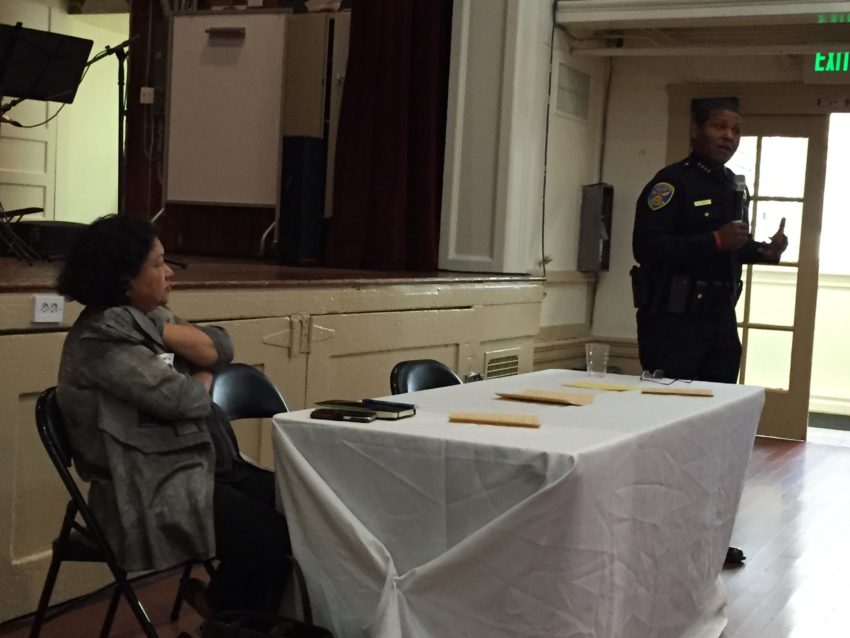 Police Chief Bill Scott spoke with some 40 community members at the Mission Neighborhood Center on Tuesday, addressing their concerns about police bias, community engagement, accountability — and the Police Officers Association.