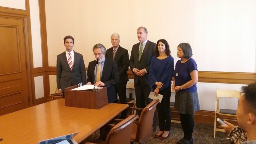 That would be to the liking of Mark Leno, who bemoaned the pro-Breed PAC currently demonizing him (Leno, notably, blamed the “extraordinary amount of new money” in San Francisco for clouding voters’ ability to make decisions). Breed, who was invited to today’s press conference, did not attend. Fellow candidate Jane Kim, a co-sponsor of the legislation, also did not attend, though she blamed a scheduling mishap.