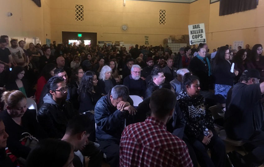 Police showed five videos that appeared to support their version of events but threw community members into a blind rage. After one of the videos in which officers are seen firing on Duarte, the community erupted, chanting, “Asesinos! Asesinos!”