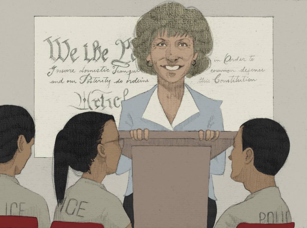 To begin chipping away at the problem, Rahr has used the U.S. Constitution as a compass. The document is represented in large, window-sized fashion in at least three different — very visible — places at the academy. Rahr handed out a copy to each recruit during the Guardians Are Warriors class, telling them that when they become commissioned officers they will have more power and authority than the President of the United States or the Chief Justice of the Supreme Court. “You are going to have power as an individual to take away the life or liberty of somebody with no prior permission,” she said.