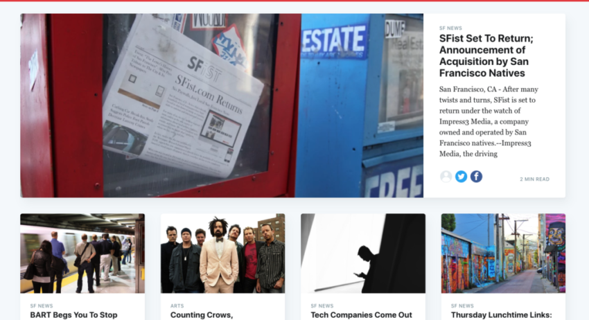 Impress3’s has acquired the SFist assets to bolster its mission to breathe new life into the struggling local news industry. It uses automation software and machine learning to assist writers and editors as they produce the most interesting content for readers in specific geographic regions or business verticals.