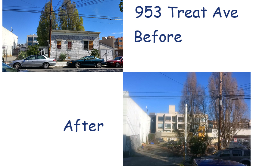 For now, the “character defining features” of the cottage are shattered and strewn across the lot. When the new building rises, there will be two new structures on opposite ends of the right-of-way, part of a wave of planned developments on Treat Avenue and Folsom Street that will change the look of the area, and increase the density of the neighborhood.