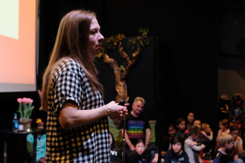 When asked which of her profiles of inspirational women she liked best, Clinton declined to answer — but did state that she was glad that, in one of the books’ opening panels, she was able to sneak in a picture of her own mother and Coretta Scott King. She also read the kids snippets about a number of the women she profiled, including Maria Tallchief, Sally Ride, Caroline Herschel, Ruby Bridges, and — to audible gasps of joy — Joanne “J.K.” Rowling.