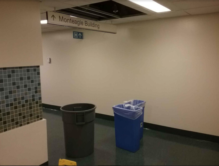 St. Luke’s patients showing up for a.m. appointments were turned away; they negotiated soaked hallways and carpets and slalomed between trash cans catching dripping water and filled with dissolved ceiling material.