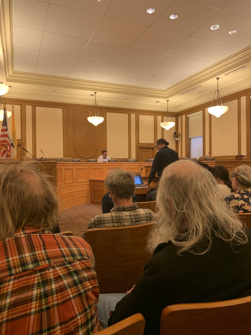 Another thing to mention is that there were so many people there that ~25 people had to sit on the floor of the hearing room or lean against the walls. Before the hearing, police arrived and moved these people to another room where they could watch a livestream of the hearing.