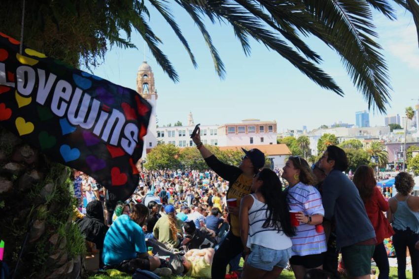 Just a few hours before the Dyke March on Saturday afternoon, thousands of LGBTQ people and their allies came together as a community at Mission Dolores Park to show their pride and celebrate inclusion and acceptance.