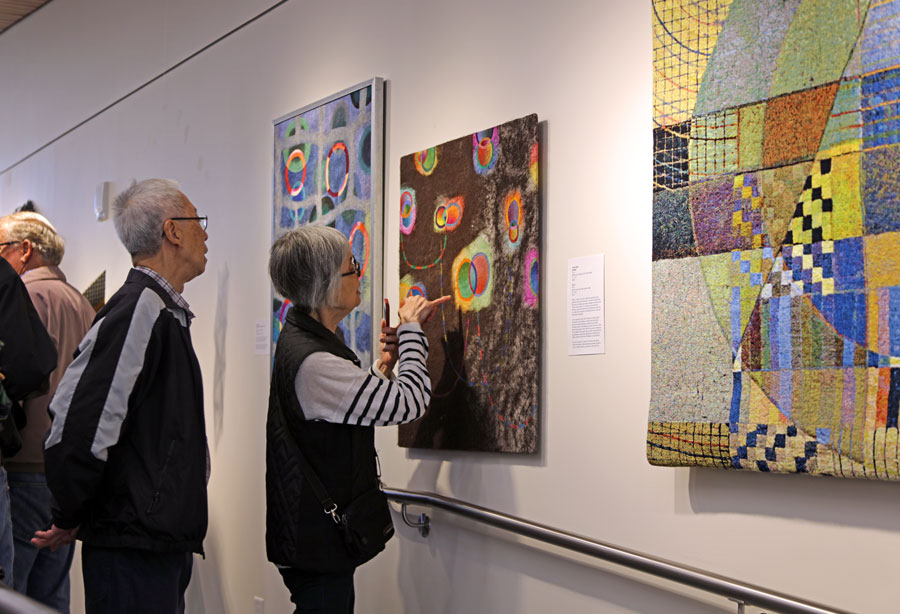 Thursday evening’s event was buzzing as more than 100 people, young and old, packed into the gallery space, exchanging smiles and embraces, chatting and capering from one installation to the next. The walls were lined with sculpted wire, woven textiles and a variety of contemporary artwork.