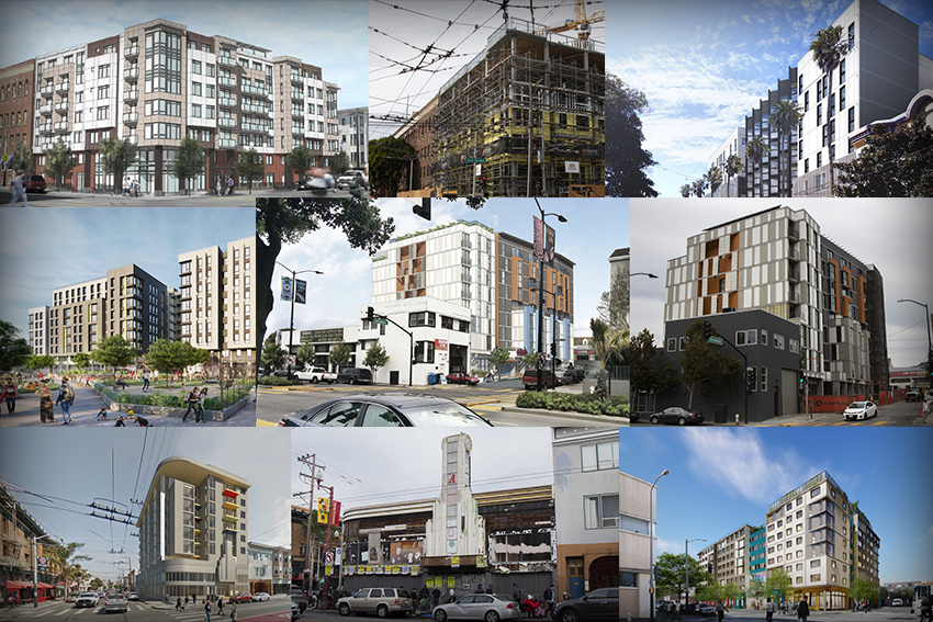 In all, five different affordable housing projects have broken ground. Two are being developed by the Mission Housing Development Corporation and three by the Mission Economic Development Agency, known as MEDA. In addition, two more buildings, with 193 total units, are in the works but not yet through the approval process.