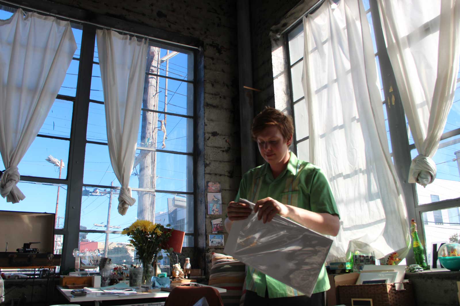Sophia Green, for example, has a cubicle that is part of a big studio on the second floor of the building. It’s a lot like WeWork, but for art.