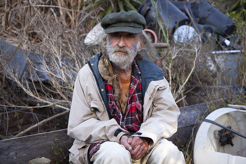 Nowadays, Whitaker takes it easy. His back hurts, and he has to take smaller steps to get around. He uses a brightly decorated walker to move about his home; it’s painted lime green. He doesn’t get out as much nowadays. Art is everywhere in his home, outside of his door, on his door and above his bed. A flag above his pillow has a rainbow-colored peace sign, and above that is a painting of Whitaker when he was younger, complete with his applejack newsboy hat.