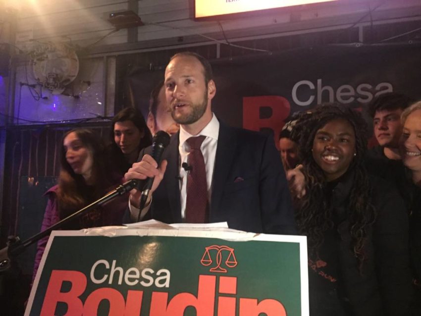 Boudin is flying back from a visit to his incarcerated father in New York; he and his team had not anticipated the election would be decided so soon.