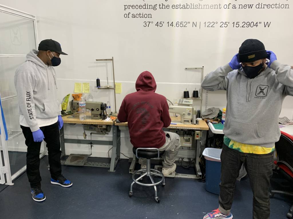 Likewise, the owners of the Valencia Street apparel store State of Flux — while having applied for a collage of loans — has pivoted to making washable face masks, which they are both selling online and donating to neighbors. That business may soon take off, as Mayor London Breed is now requiring people to wear face masks at “essential businesses, in public facilities, on transit, and while performing essential work.”