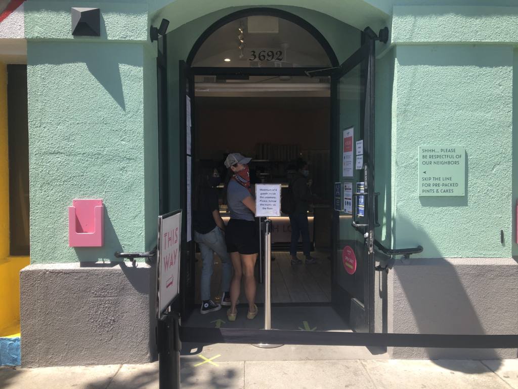 As a Bi-Rite regular, I’m accustomed to long lines of people snaking around the corner restaurant that is the ice cream shop’s neighbor, regardless of the weather. So I was surprised to find only a handful of happy patrons waiting in front of the brightly painted shop.
