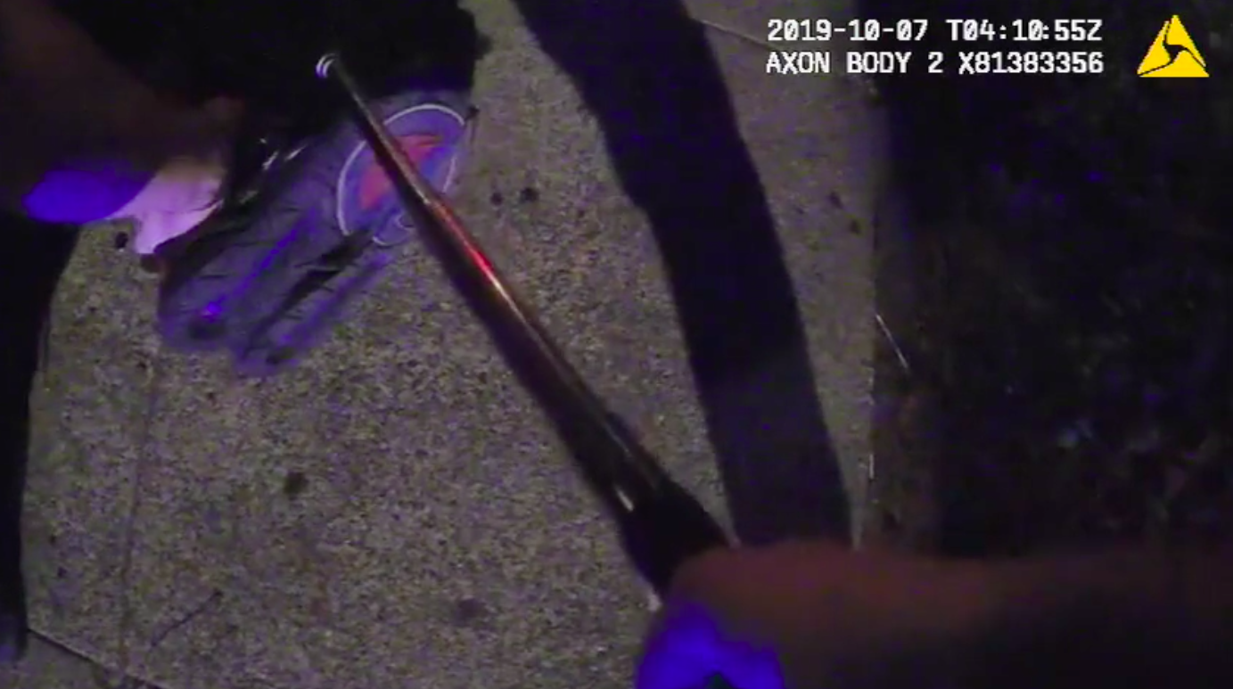 The body camera of a third officer shows a similar scene.