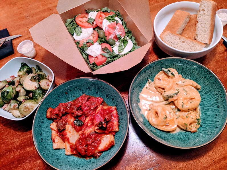 Fiore Caffé, a sweet, corner Italian cafe that we’d never tried — very local, family-owned, apparently very much beloved by the neighborhood. How had I missed this place until the lockdown? I ordered our food online and picked it up. There was no one else inside, so I stepped in to get out of the cold. A lovely space, where I can see myself spending leisurely dinners or brunch When This Is All Over. But for now, takeout is good.
