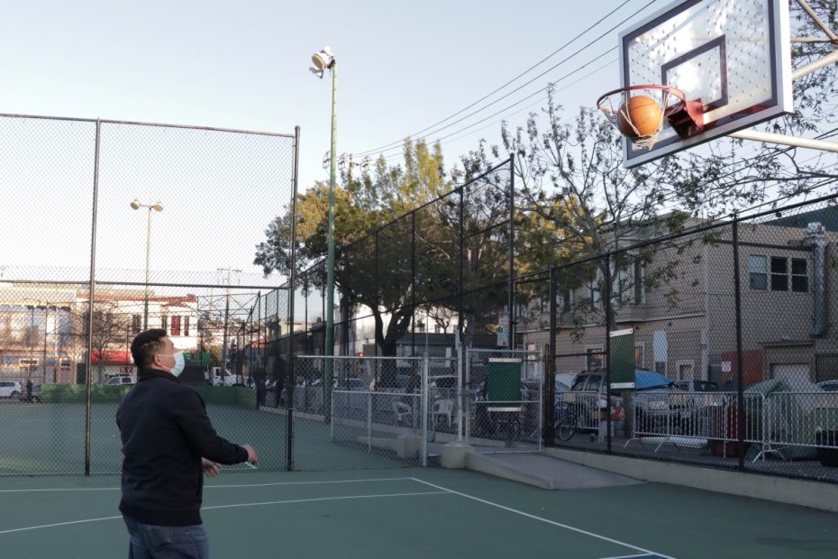 Today, his goal was to play some basketball. Although the courts have been closed, earlier he had spotted a broken section of the fence where anyone willing to get on the ground could wiggle into the playground.