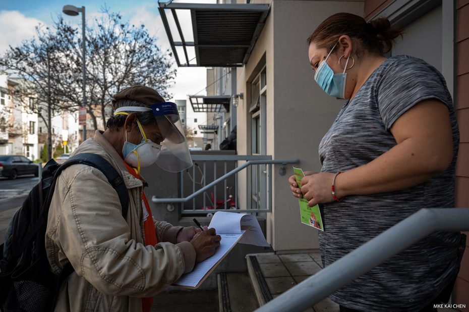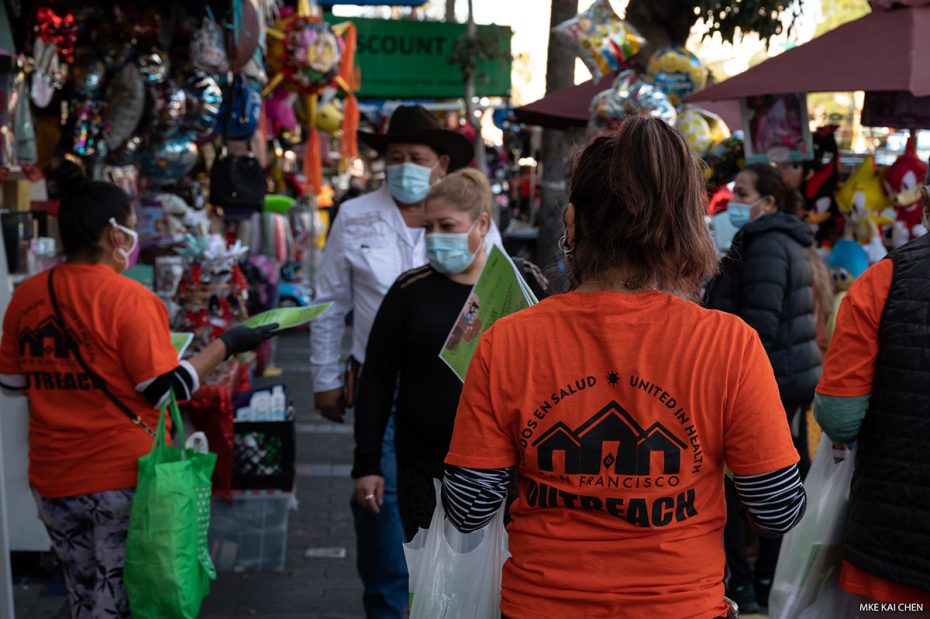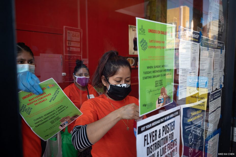 The Latino Task Force and researchers at UCSF — a collaboration known as Unidos en Salud (United in Health) — will launch Covid-19 rapid testing this morning at the 24th Street BART Plaza. To prepare, volunteers spent three days this week knocking on doors, answering questions and distributing flyers on the testing and research campaign. This is what an outreach effort looks like. Testing will take place five days a week: Sundays, Mondays, Tuesdays, Wednesdays and Fridays.