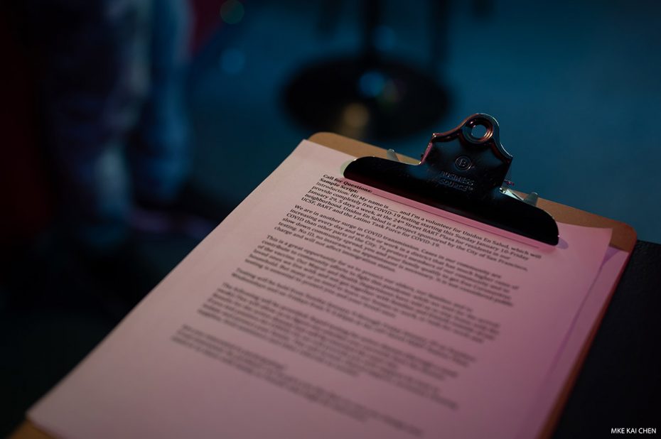 Volunteers listen to how the outreach will work. Photo by Mike Kai Chen.