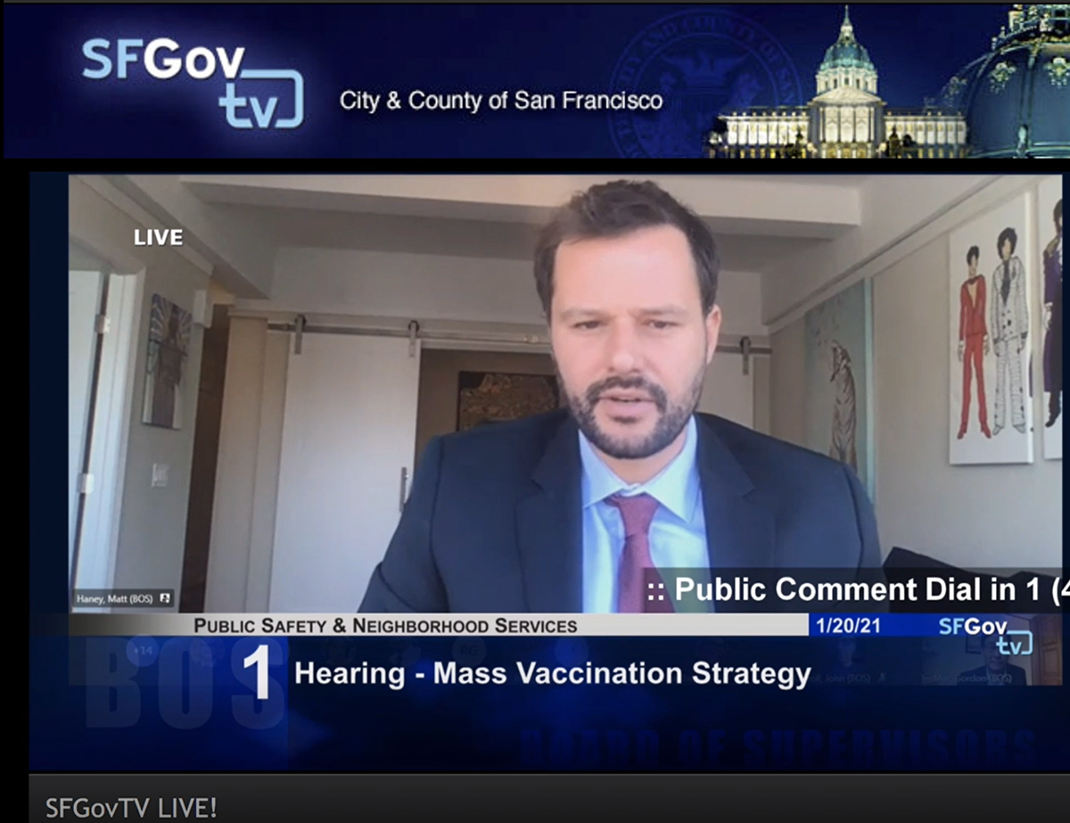 Prompted by what he called an obvious mess with a lack of communication, District 6 Supervisor Matt Haney arranged today’s hearing on the city’s vaccine rollout to clarify plans for mass vaccinations in the future and receive updates from healthcare providers.