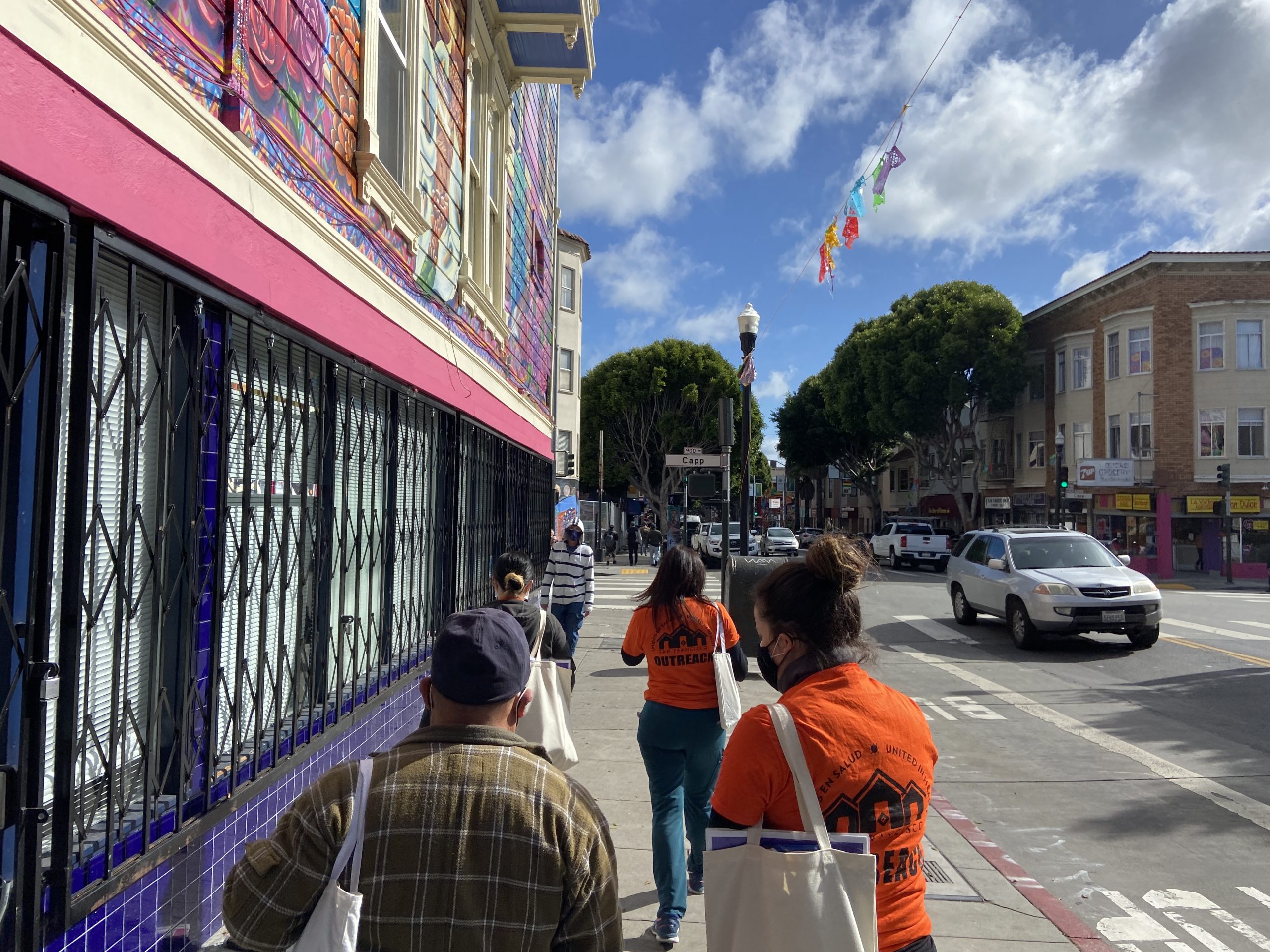 The art teacher approached the canvassers, who were among the dozen or so volunteers deployed throughout the Mission District on Friday and Saturday by Unidos en Salud, a partnership between UCSF and the Latino Task Force. The goal was to register residents who qualify under the expanded vaccine eligibility group, including teachers, educators, food and agricultural workers, and emergency service workers like cops and firefighters. These new eligibility rules take effect Wednesday.
