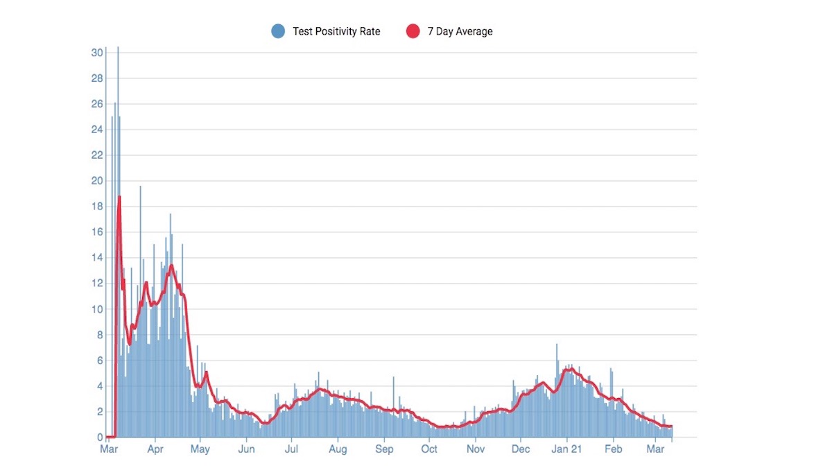 For the week ending March 8, the seven-day rolling average of daily new cases in the City was 34 or 4 new cases per day per 100,000 residents. The Phoenix Data Project sees the virus spread stabilizing in this zone, which is similar or below where the City was last October before the fall surge.