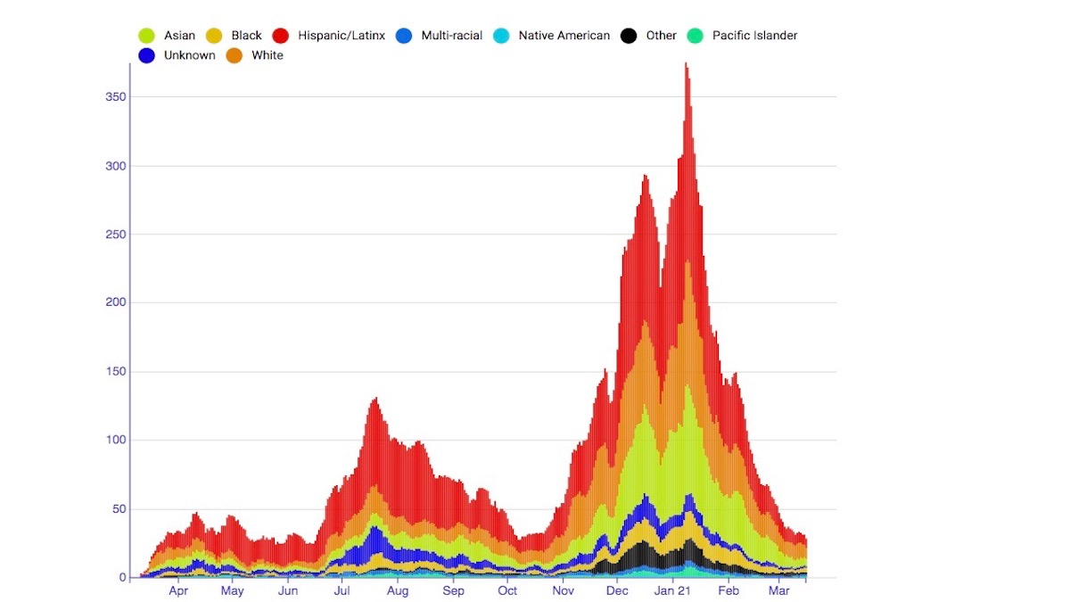 Between February 15 and March 15,Ā DPH added 154 new cases to the Mission for a cumulative total of 3989 cases or 66.9 cases per 1,000 residents. Though the Mission has the highest number of cases, Bayview Hunters Point has the highest rate at 99.7 cases per 1,000 residents. No neighborhood west of the Mission has a rate higher than 40, and the neighborhood with the lowest rate in the City is the Inner Sunset, home to UCSF and Mt. Sutro Open Space, with 16.8 cases per 1,000 residents.