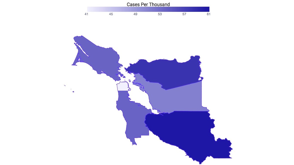 As of March 12, DPH reports the Mission with 4059 total cases or 680.1 cases per 10,000 residents.Ā Bayview Hunters Point has a cumulative rate of 1,015.4 cases per 10,000 residents, Visitacion Valley has 754, Tenderloin 748.3, Excelsior 655.3, Portola 618.3, Outer Mission 587.9 and SOMA 518.6 cases per 10,000 residents. Outside the City’s Souteast sector, the neighborhood with the highest rate is Japantown with 506.9, while the Inner Sunset has the lowest rate in the City with 170 cases per 10,000 residents.