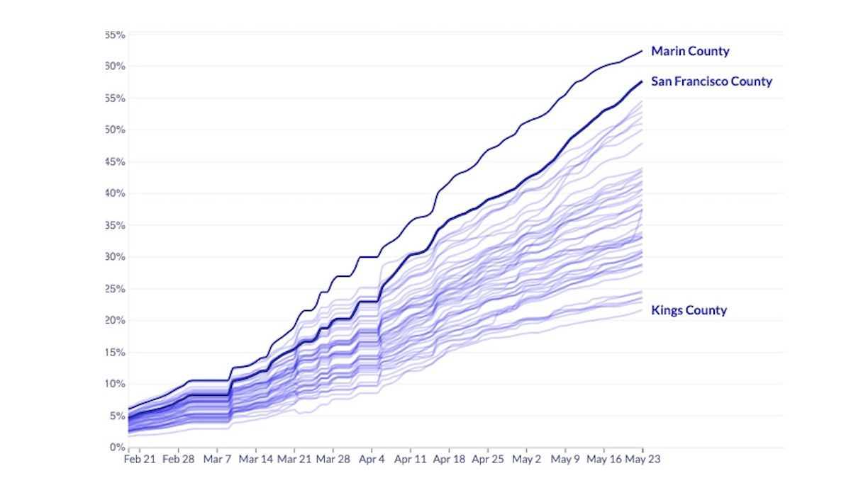 The CDC data used for the chart lags behind the data supplied from SFDPH. SFDPH has yet to update vaccination numbers for the weekend. As of May 23, DPH reports overĀ 77 percentĀ (605,010) of San Francisco residents over 16 had received one dose, and over Ā 66 percentĀ (504,855) are completely vaccinated.Ā On May 23, the seven-day rolling average of shots per day wasĀ 5,685. For information on where to get vaccinated in and around the Mission, visit ourĀ Vaccination Page.