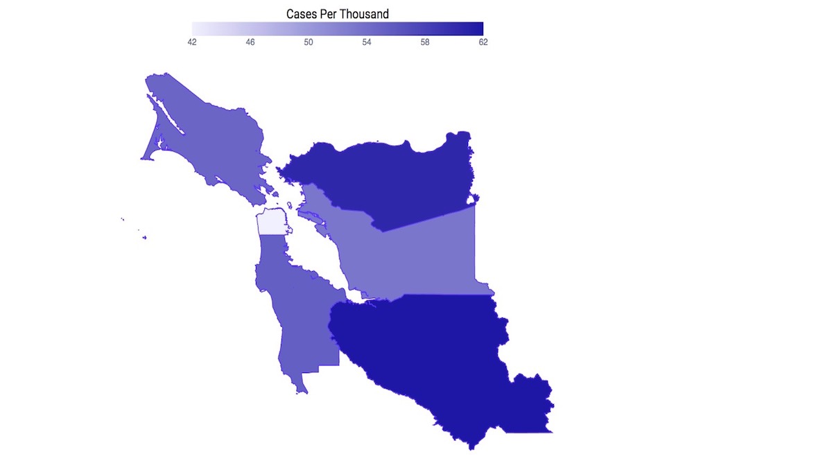 Between April 27 and May 26, DPH reports 49 new cases in the Mission or a rate of 8.22 new cases per 10,000 residents. Bayview Hunters Point remains the City’s hottest Covid spot with 72 new cases or 19.25 new cases per 10,000 residents. The Citywide rate was 6.22 new cases per 10,000 residents.