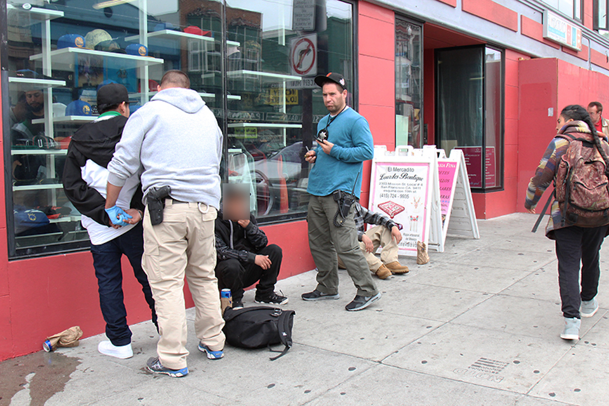 Men detained on 19th and Mission, 2018. Photo by Abraham Rodriguez.
