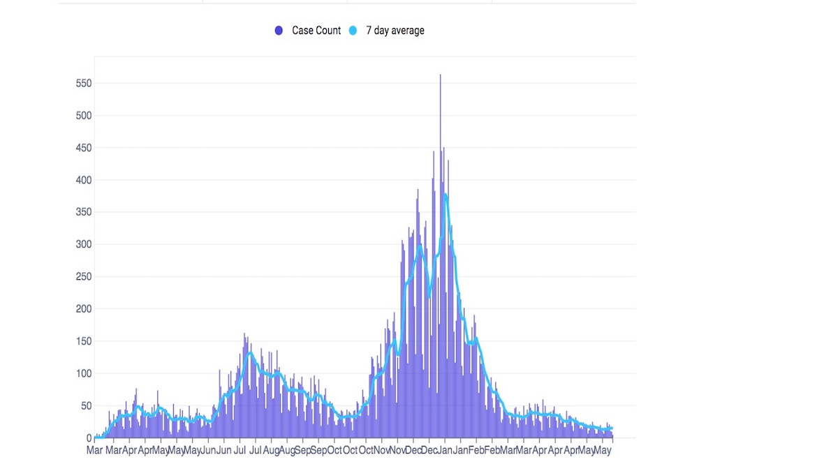 For the week ending June 3, the seven-day rolling average of daily new cases in the City wasĀ 14Ā new cases, orĀ 1.6 new cases per day per 100,000 residents.