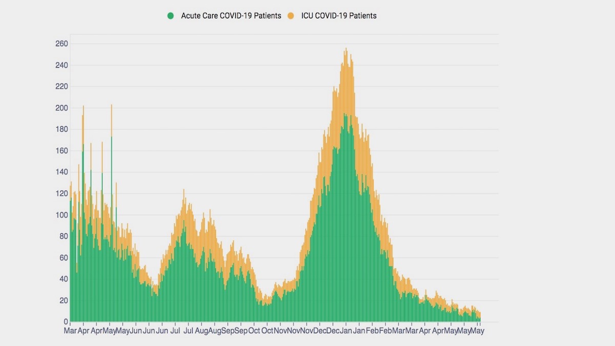 There have been 0 reported Covid-related deaths in San Francisco since May 7. For the month of May, only 3 Covid-related deaths have been reported.