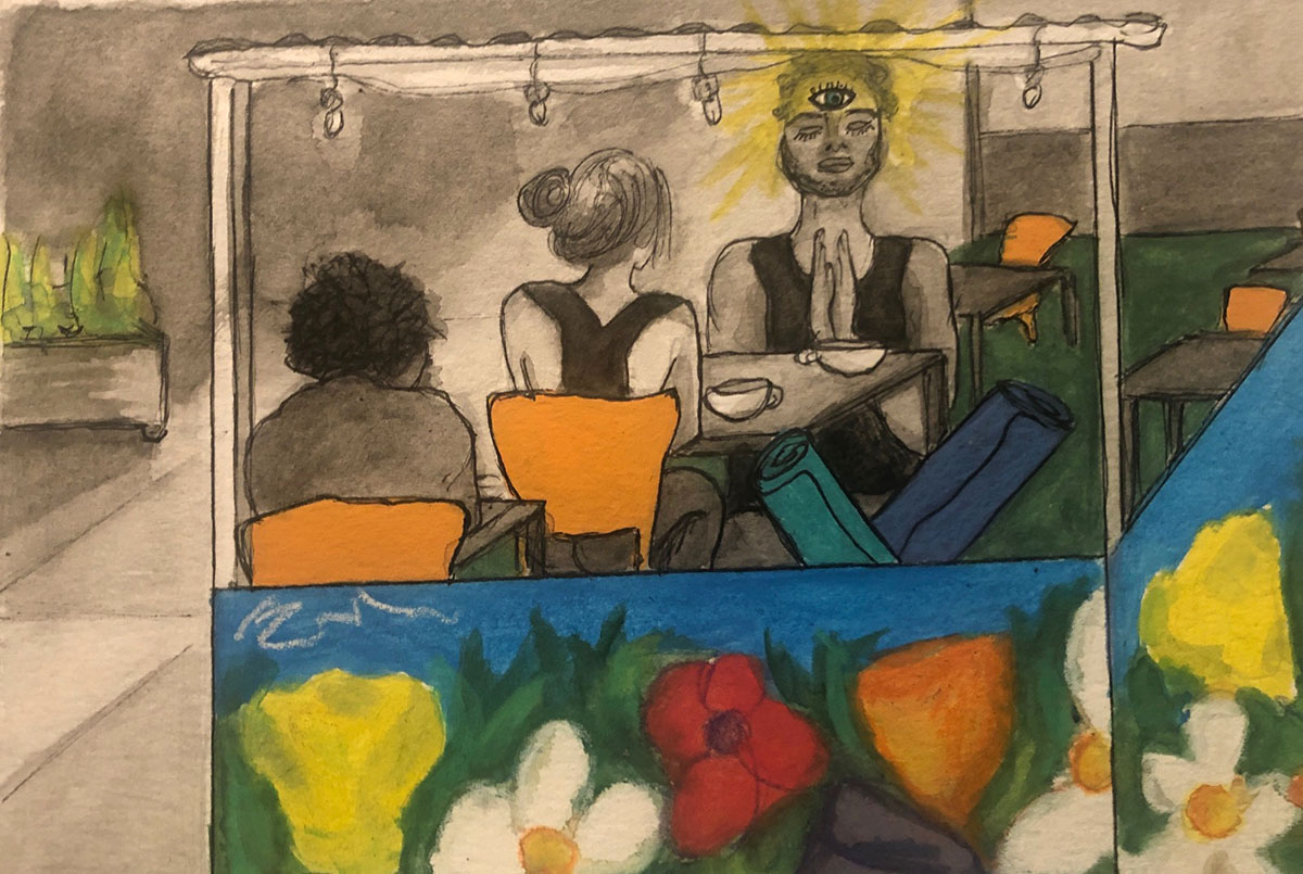 Back at the outdoor seating, two very pretty young people — a man and a woman — came in and took a table, drinking tea. I closed my eyes. It has been over a year now since I got to eavesdrop. They were talking about how much they enjoy supporting their favorite meditation retreats during the pandemic, and how glad they are that no one else is supporting their favorite meditation retreats during the pandemic because that way the facilities are mostly empty and they don’t have to deal with a lot of other people.