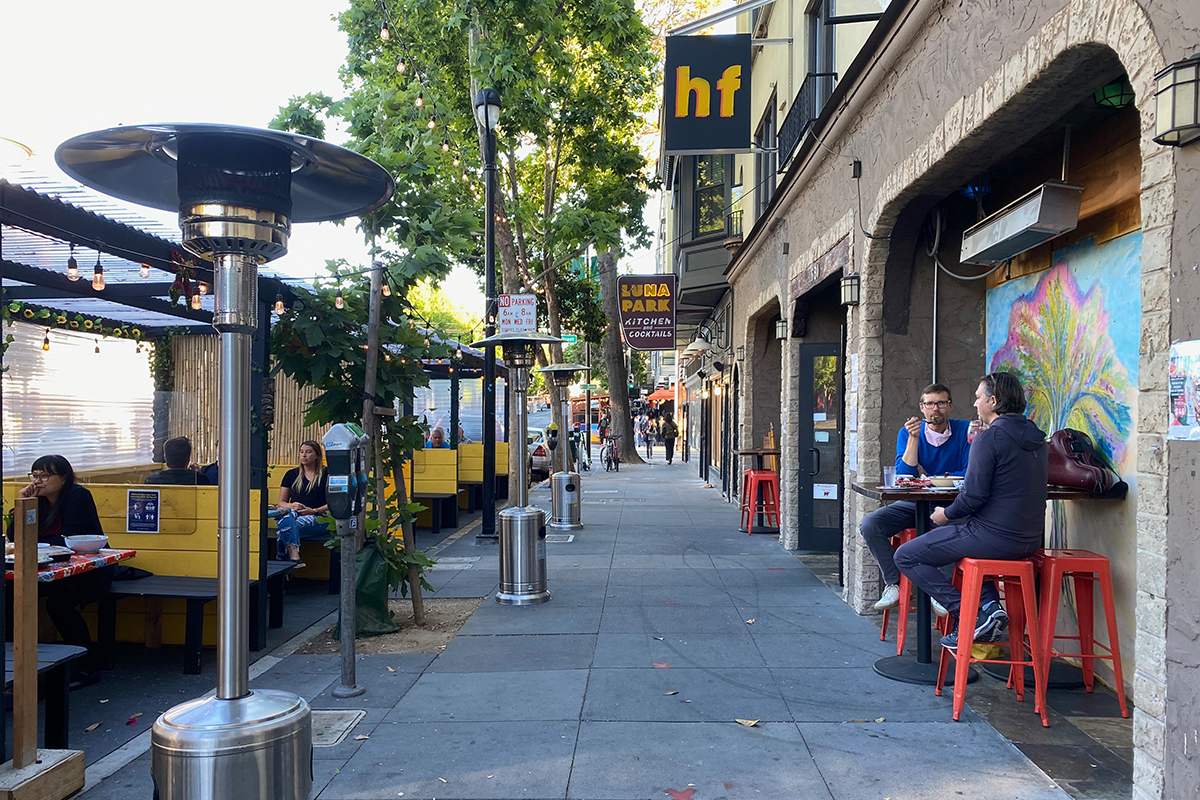 Repetti opened her gym in October 2019, a safe place for women to train in a supportive environment. After last year’s shelter-in-place, her members supported her. Seventy percent of patrons joined the online training model leading up to the construction of a parklet in July, she said.