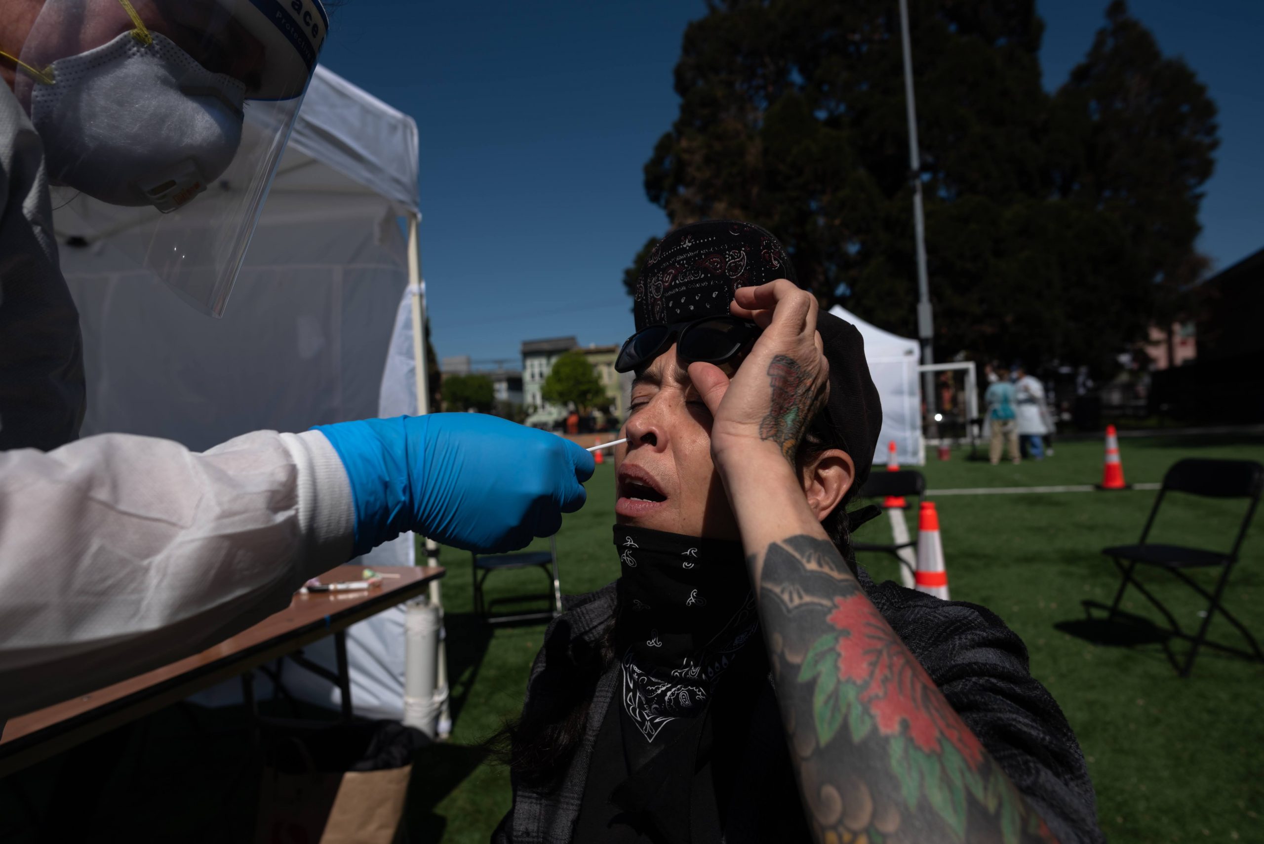 A community member getting a Covid test in San Francisco. Photo by Mike Chen.