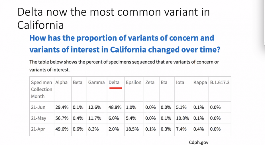 We did get some reassurances this morning from UCSF Dr. Carina Marquez who reported on the Delta variant with the Latino Task Force. Marquez said the uptick in cases can be attributed to relaxed restrictions and a more transmissible Delta variant. Hospitalizations in San Francisco, she said, are key and up 27 percent, but “still low.”