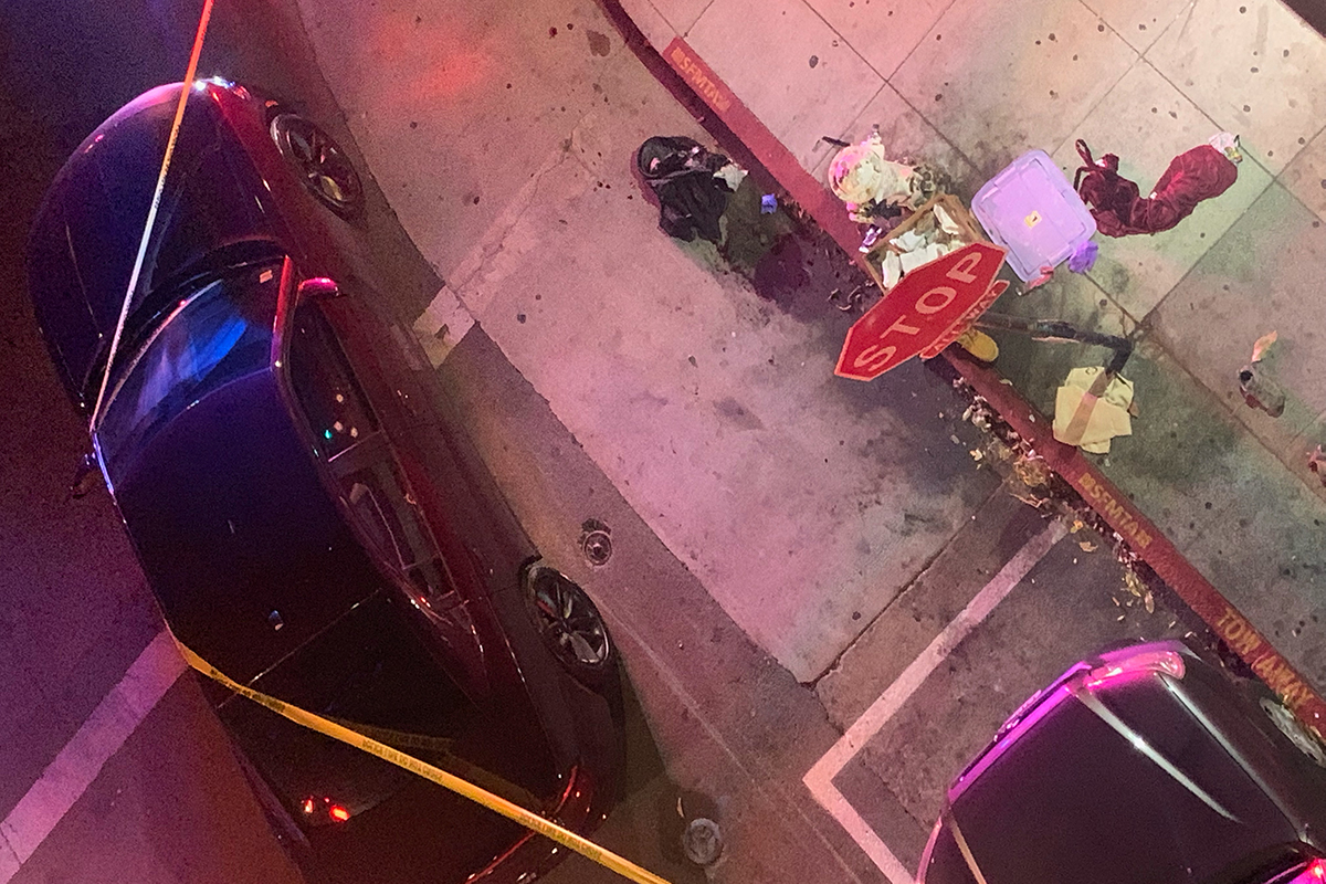 The resident, whose partner heard four or five gunshots, provided pictures of the aftermath showing a vehicle with what appear to be three bullet holes in the passenger window, and a fourth in the rear window at 23rd and Capp streets. A deep-red liquid can be seen on the street near the car.