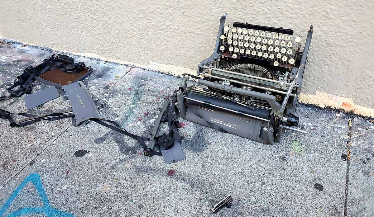 4. What a shame it was left in such disrepair and disarray. On the other hand, why would a machine in good working order be left out on the street? Happens sometimes, but not often. This particular abandonment kinda stings a bit: little chunk of mechanical writing and printing history left to its fate.