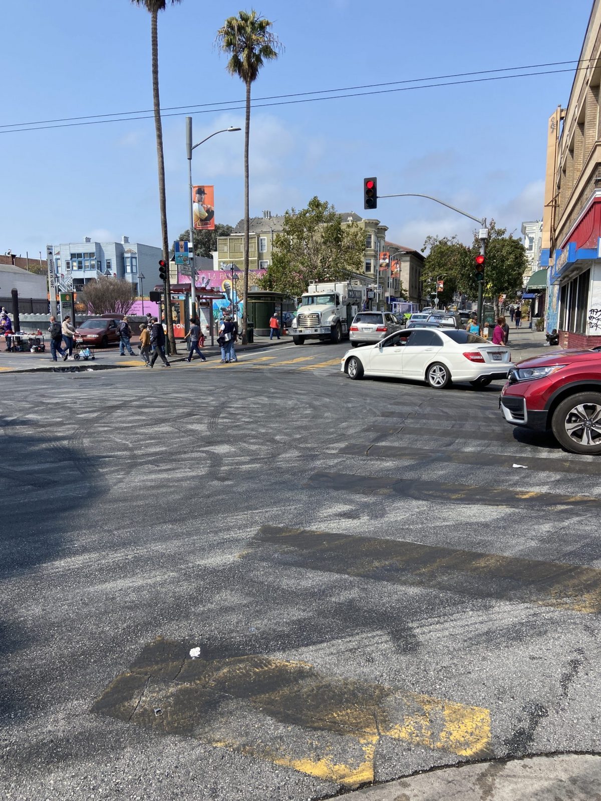 Just before 9 p.m. on Sunday, a “huge, screeching, noisy” sideshow revved up at the major intersection and lasted “at least 20 minutes,” even blocking Muni buses, according to one nearby resident who declined to be named for the story. Several police cars were parked at nearby 24th and Folsom Streets, and a few sideshow participants apparently fled the area, the resident said.
