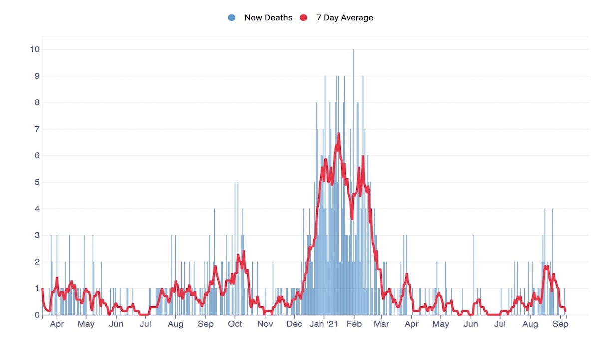 You might want to check with the New York Times Covid tracker for SF death rates instead of SFDPH: 9/2: 3 deaths; 9/3: 3 deaths; 9/4; 2 deaths; 9/10: 8 deaths; 9/11: 5 deaths and 9/12: 1 death. Grand total: 22 deaths so far in September, at least.