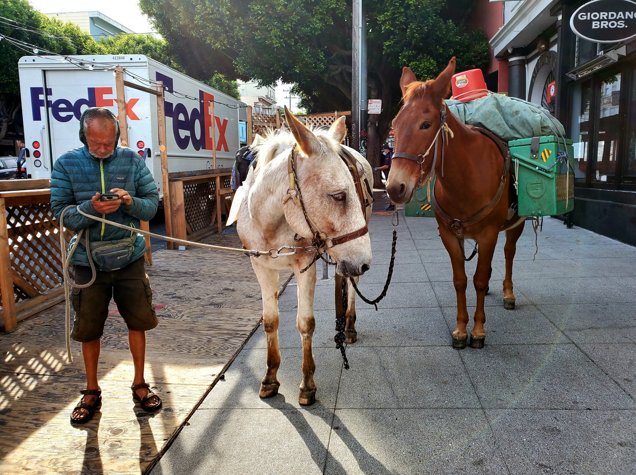 THERE WERE TWO MULES WALKING ON THE SIDEWALK!!!