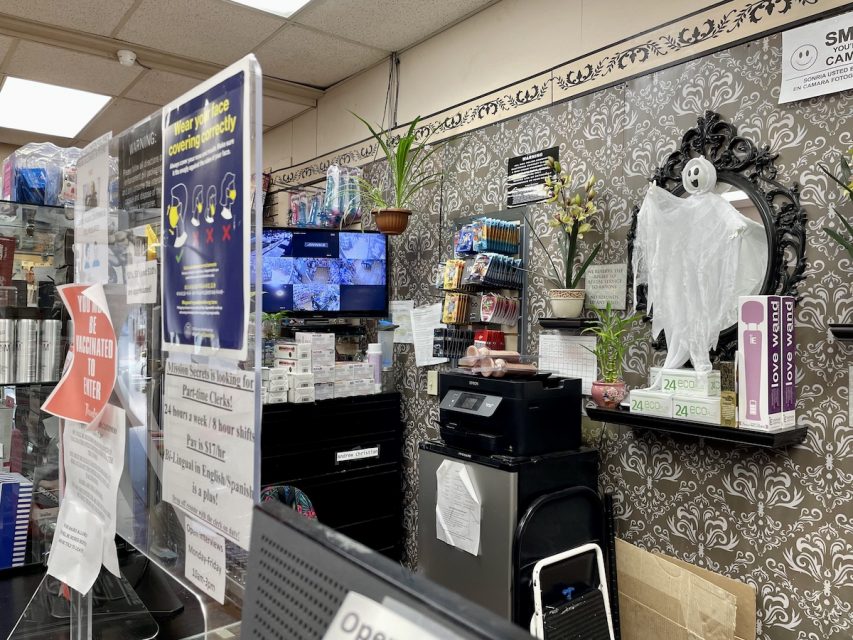 This is becoming an unwelcome fixture of daily life at Mission Secrets. On Tuesday, a man came in and walked directly to the back of the shop, where customers are allowed to sample pornographic videos. He stayed there for an inordinately long time. Parker asked him to pay and show proof of vaccination. “And he started to threaten me and lunge at me,” said Parker.