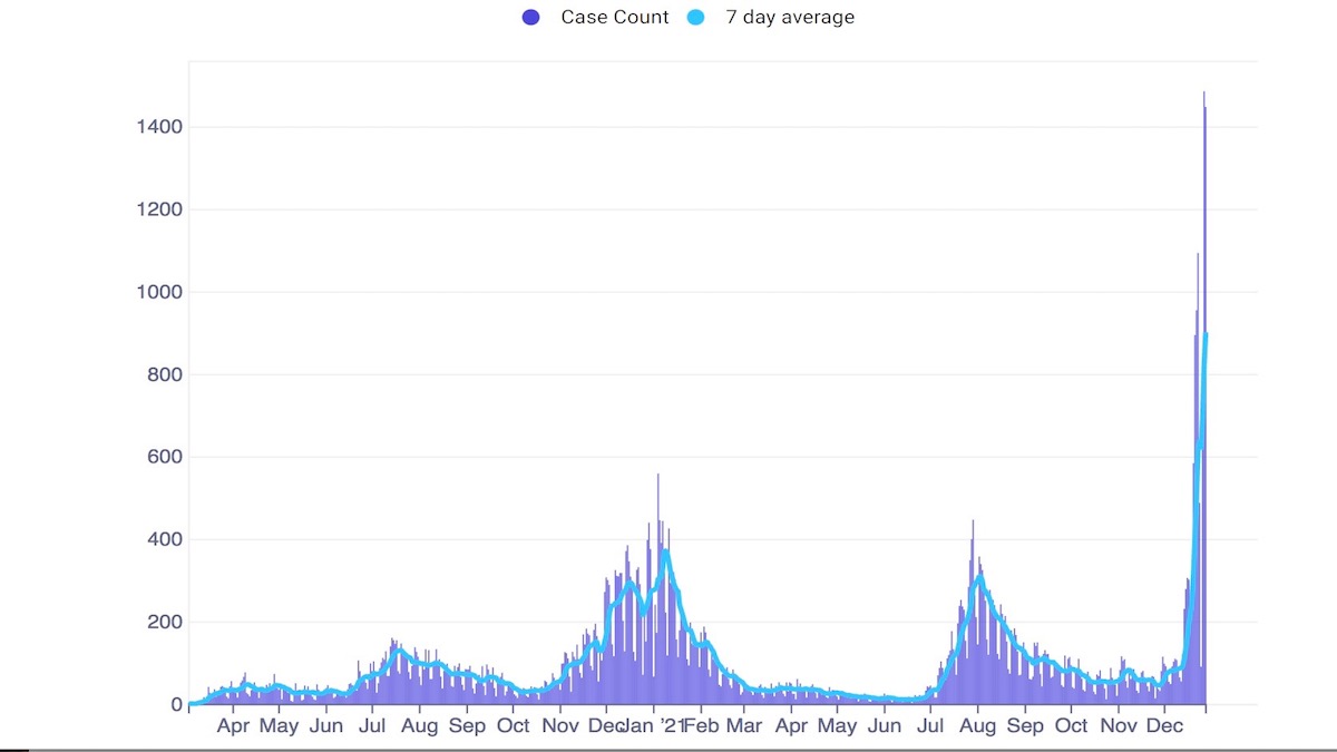 On Dec. 27, DPH reports covid hospitalizations rose to 63 , or about 7.2 per 100,000 (based on an 874,000 population). The ICU population rose by 2. Note: DPH cannot report how many are in the hospital for covid, and how many are in the hospital for another reason and tested covid positive upon entrance. Nor is the Department able to report on the number of vaxxed and unvaxxed covid patients.